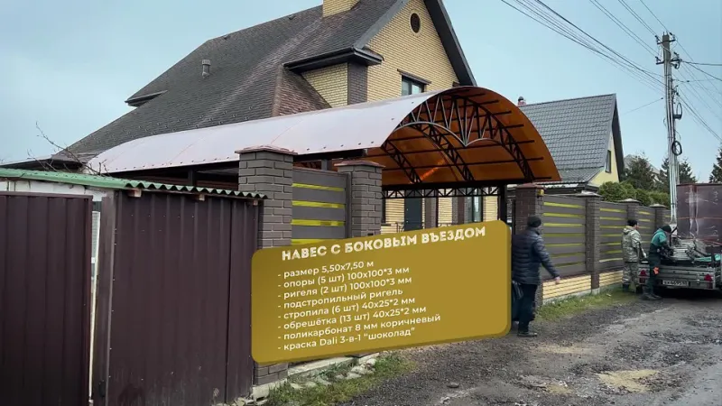 На сайте компании можно подобрать готовый проект или заказать по индивидуальным требованиям. Рекомендуется ознакомиться с примерами работ, сделанных под ключ, в фотогалерее, изучить видеоматериалы. Последние дадут полное представление о процессе изготовления, монтажа навесов из поликарбоната.