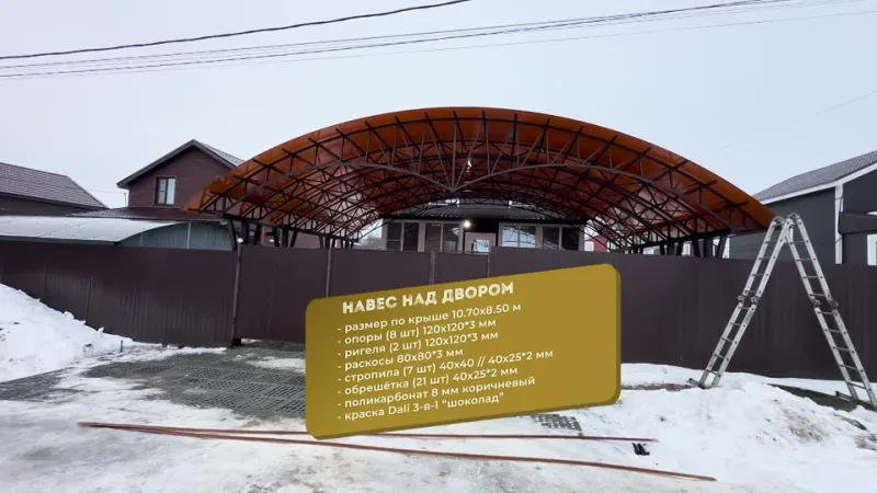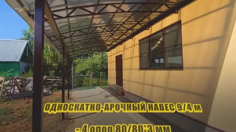 Реализуем такие проекты, как парковки, крытые зоны отдыха и барбекю, козырьки над входом, отдельно стоящие и пристроенные укрытия, беседки. Мы предлагаем сотни проектов арочных, односкатных, двухскатных сооружения для установки на частных и коммерческих площадях.