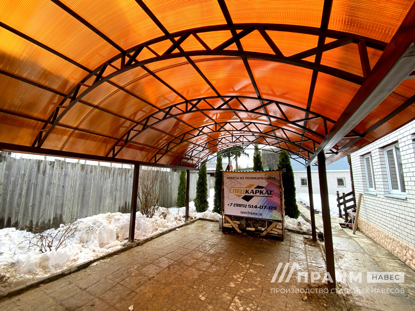 Портфолио «Прайм-навес» – наглядный пример качества изготовленных конструкций. Каждая фотография – это индивидуальный заказ, выполненный компанией. Этот раздел сайта поможет подобрать навесы из поликарбоната для Москвы или Московской области по внешнему виду, особенностям конфигурации.