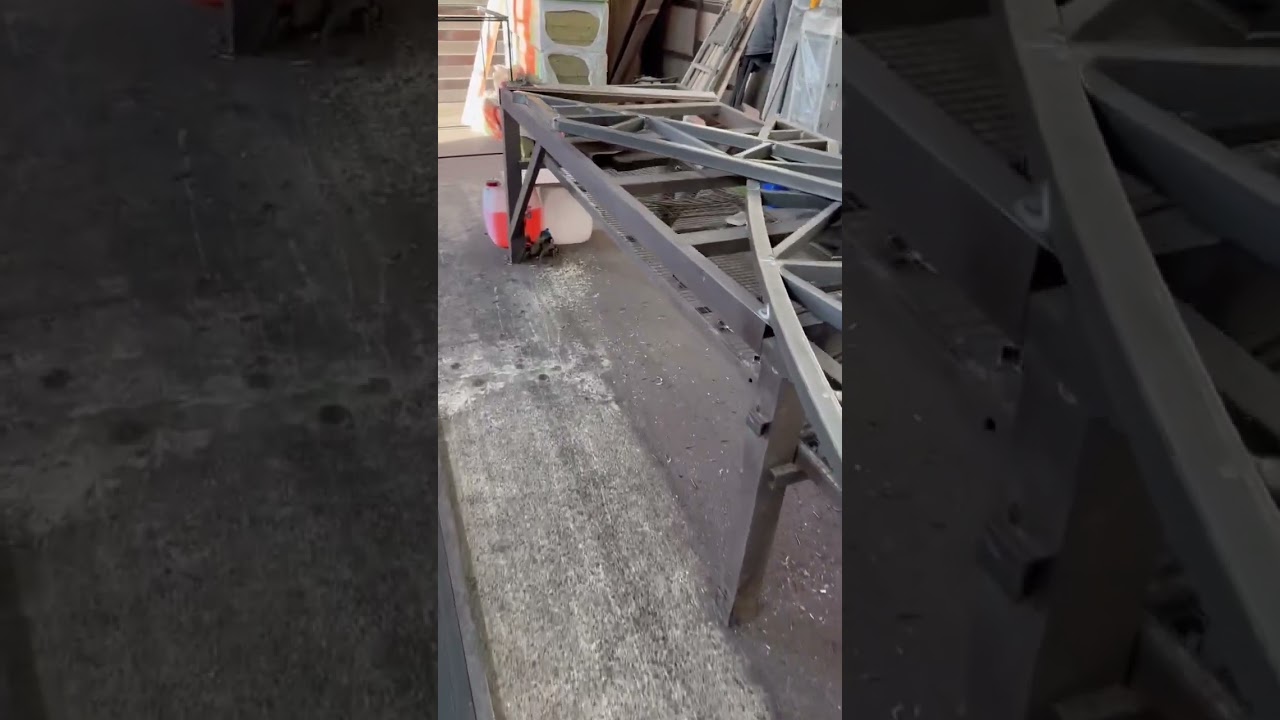 Приступили к сборке очередного комплекта навеса из поликарбоната с необычными стропильными фермами
