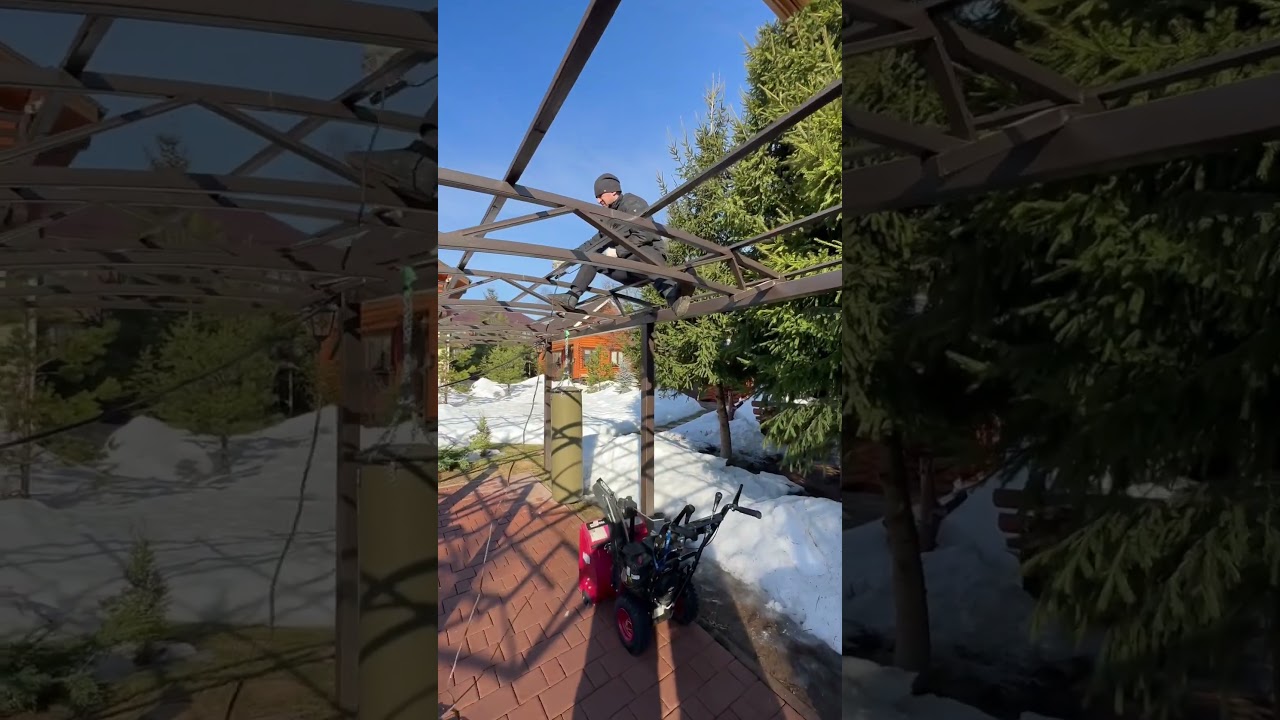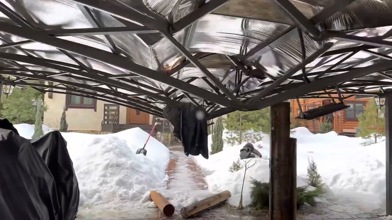 Упал очередной навес с кровлей из поликарбоната ( часть 2 )