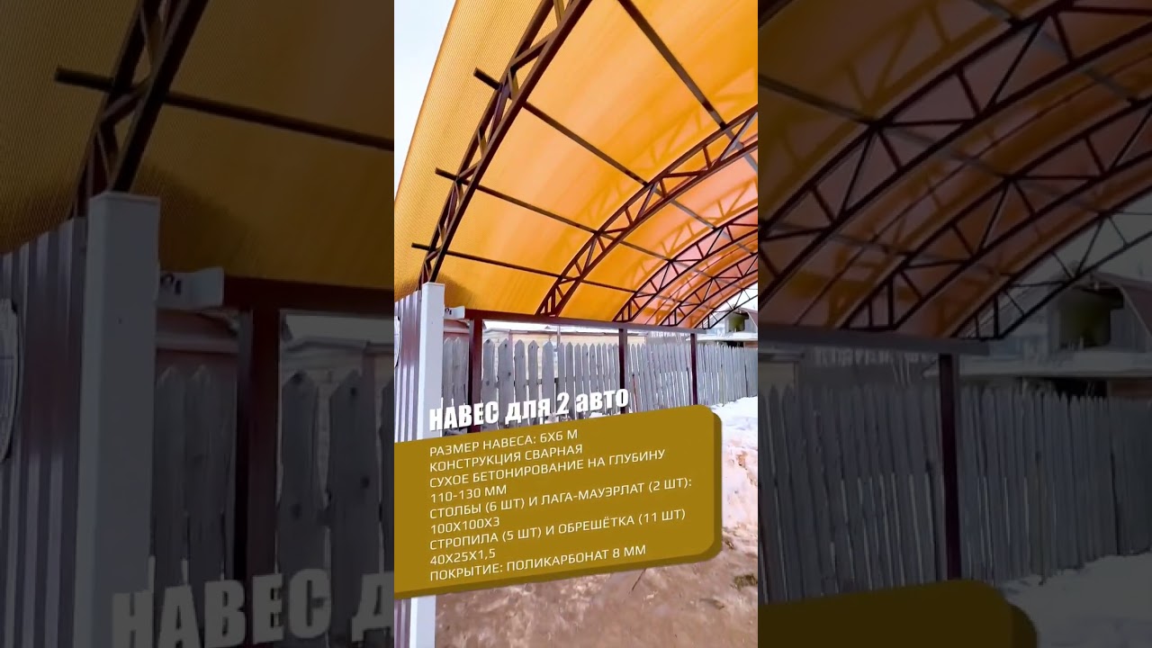 Навес из поликарбоната на две машины 6х6 | «Спецкаркас» - изготовление, доставка и монтаж навесов